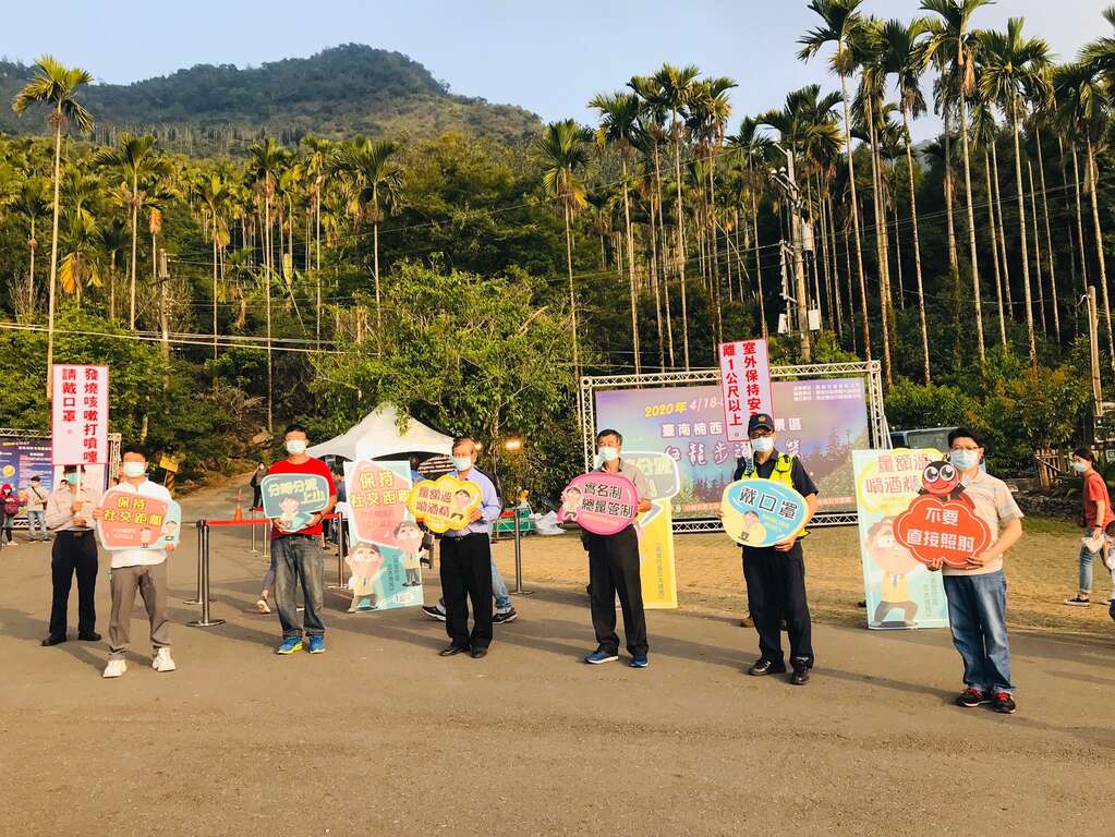今(18)日是梅岭伍龙步道假日赏萤管制措施实施首日,二梯次各500个名额已于昨日(4/17)网路预订额满,下午4点左右民众陆续开始报到后,现场也透过黄伟哲市长的广播不断地宣导赏萤的防疫措施,提醒登记赏萤的民众须戴口罩方能入场,台南市楠西区李鸿裕区长及警察局玉井分局也特别到现场宣导室外保持安全距离1公尺以上,发烧咳嗽打喷嚏请戴口罩。现场参加民众也都相当配合户外保持安全距离及排队办理报到、量体温、喷酒精等防疫措施。