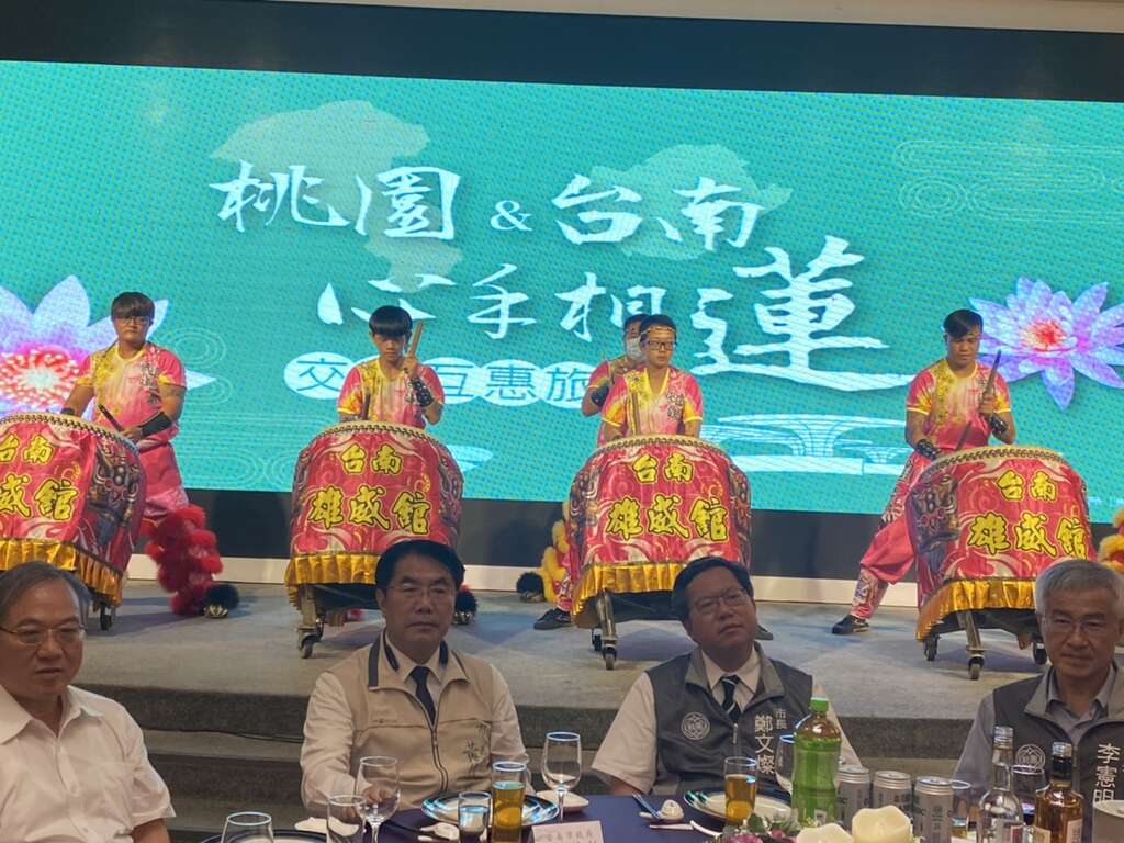 台南市观旅局局长郭贞慧上个月以观光资源共享、观光活动互推、里民活动互访等三大合作面向主动拜会桃园市政府洽谈城市合作以振兴国旅,成功谈定双城合作送客计画,桃园率于7/13日由郑文灿市长领第一团共320位乡亲组成里民活动团前往台南,共三天两夜的经典行程后先探访台南必玩景点—十鼓文化村、滨海的七股龙海号、台江文化中心以及渔光岛赏夕阳,以及山上水道花园博物馆、玉井青果市场,丰富的三天两夜的上山下海的经典行程让桃园里民充分了解台南的旅游特色,台南市黄伟哲市长也亲自到晚宴现场欢迎桃园市郑文灿市长带队的桃园里民贵客,宣布台南桃园互访人数突破4300人次,并表示竭诚欢迎桃园与台南相互交流,尤其台南即将庆祝建城四百年,很多市政能向桃园学习与交流。桃园市郑文灿市长表示,伟哲市长在防疫上有五星级的优异表现,而台南古都于文化、观光旅游与科技皆有亮眼表现。今(20日)第二团桃园里民团队共250人于今早出发前往台南体验三天两夜的经典行程,今晚晚宴黄伟哲市长到场亲自欢迎,与多年好战友郑文灿市长再度合体,为了回敬郑文灿市长带来台南乡亲到桃园旅游「住一晚送隔日一日游」的大礼,黄伟哲市长祭出三重市长大礼喜迎桃园乡亲游台南,并透露近期之内亲自带队展开台南里民桃园旅游的互惠计画,届时将有第三波合体计画,目前市府团队正精心规划中,请各位多多期待。