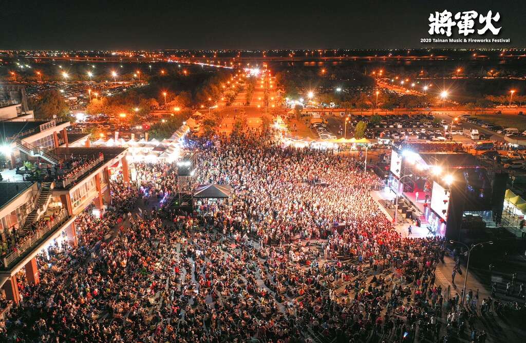 由台南市政府加码办理的「2020将军火音乐节」于今(9/27)日在将军渔港热闹登场!除了舞台前方一早即涌现来自各地的忠实歌迷朋友,烟火摄影爱好者更是多日前即以脚架卡位,只为近距离目睹偶像风采及拍摄花火最美的瞬间。而因应众多人潮,观旅局活动仍不忘防疫,除在现场一再透过口播宣导,也制作多面标语提醒参与的民众无法保持社交距离时请佩戴口罩。活动截至晚间8点30分,包含舞台区及周边观赏区域累积人数上看6万多人次,网路平台同时上万人收看,热闹滚滚。