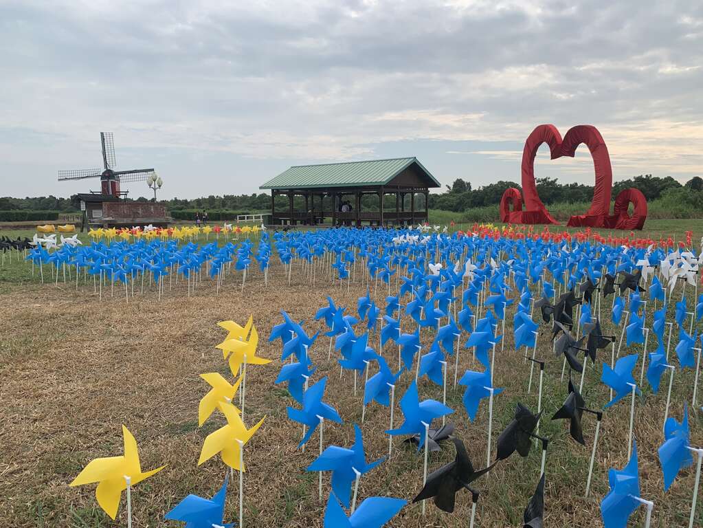 「2020德元埤荷兰村风车节」自10月1日开幕后,于10月1日至10月11日短短2周连假期间,涌进3万多人入园,现场有适合拍照的地景及装置艺术,在秋高气爽的秋天午后,吸引了许多情侣及摄影爱好者漫步园区。晴朗的蓝天就是最好的打光,而日落前的夕阳斜照,更是另一种美好,徐徐微风拂过,情侣们在园区内码头静静坐着,看着波光潋滟的湖面,伴着对岸不停旋转的小风车,在那一刻幸福地像是拥有了全世界。