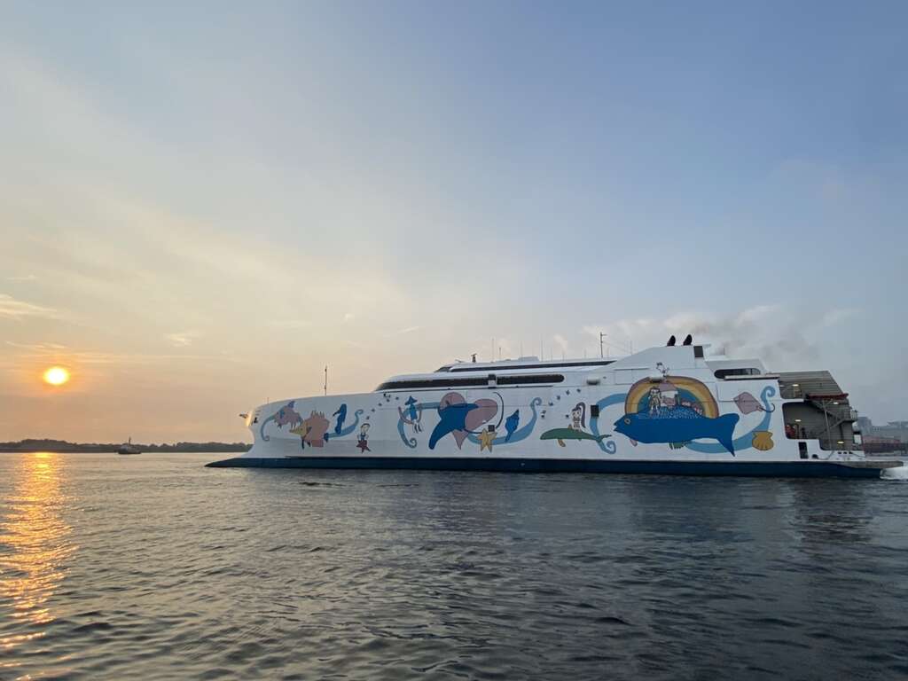 「丽娜号」原为航行日本津轻海峡的大型游轮,被誉为世上最快的海上飞船,配备4具马力强大的水喷射引擎,最快能以84KM/HR航行,安平与澎湖间单趟约2小时。黄伟哲市长表示,丽娜号除了能提供多达800名乘客载客服务,同时具备搭载350辆小客车,甚至游览车、货车皆可以开上客轮,是同时具备观光及交通运输多机能客轮,市府团队将与业者配合推动将台南特色农特产品藉由客轮带出台南。