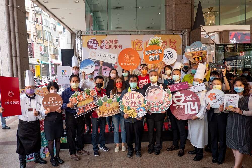 台南市黄伟哲市长表示,四月是鳯梨的产季,看准春夏凤梨「着时」香甜可口,推出凤梨系列餐点,以凤梨入菜,邀请民众品尝当令美味,凤梨的台语发音- 「旺来」,逾20家安心餐厅推出期间限定「好运旺来餐」,以凤梨入菜,结合主厨创意的各样料理和创意调饮,好运旺来餐就是要邀请大家来台南吃旺来好运来,展现台南业者相挺台湾优质水果的决心。