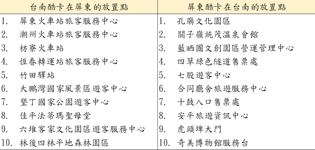(1) Tourists can collect the Pingtung or Tainan Cool Card at the placement point, and fill in their personal details correctly, complete the stamps at the attractions provided by the two counties and cities, and put them into the lucky box to complete the lucky chance. The cool card is designed as a postcard. After the lottery event is over, the organizer will send the cool card back to the public according to the address filled out by the public for commemoration.