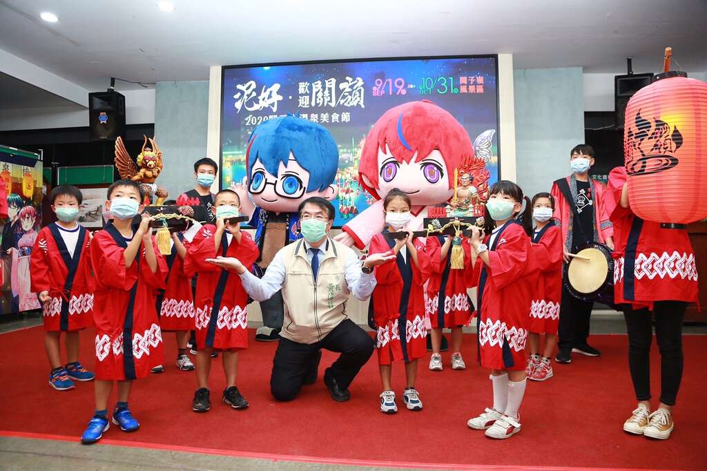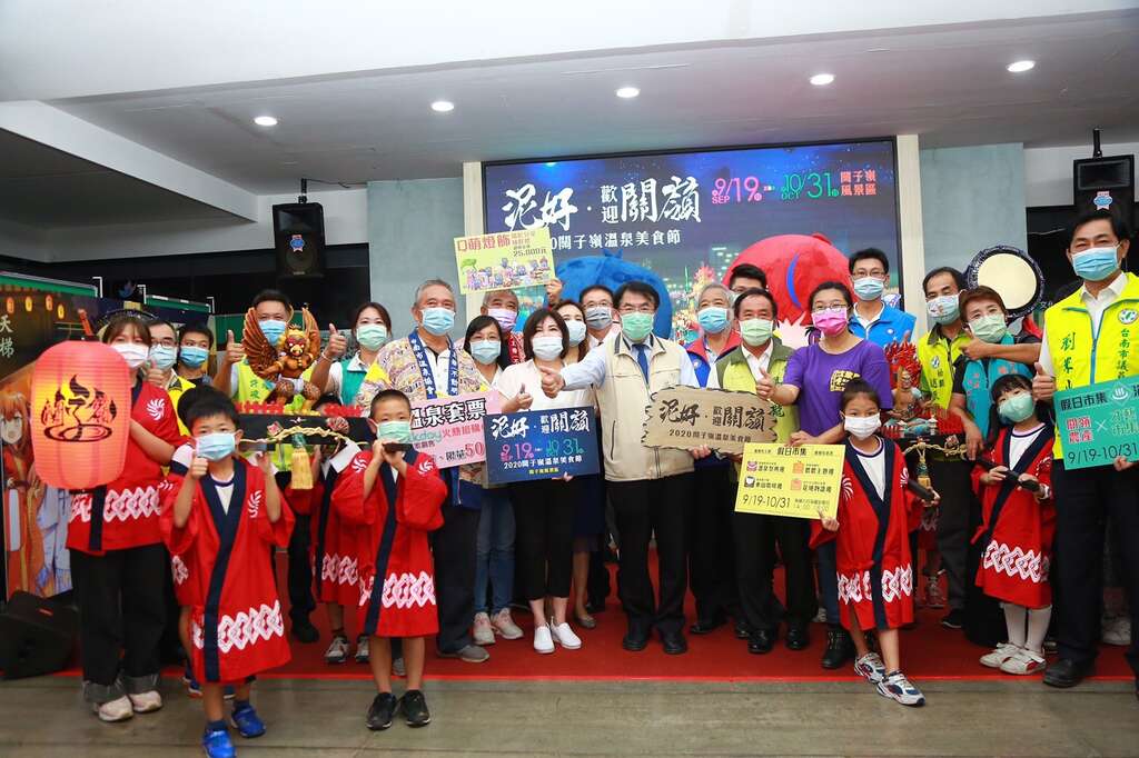 The "2020 Guanziling Hot Spring Food Festival" hosted by the Tainan City Government Tourism Bureau will be held from September 19th to October 31st, and will open in Baoquanqiao Hot Spring Park at 6pm on September 19th (Sat). The Tourism and Tourism Bureau held an event press conference at 11 am today (11) at the Minzhi Administration Center, inviting 8 students from Xinjin Elementary School in Xinying to serve as two children's lantern players, including the Little Fire Lord and the Little Golden Winged Bird, and arranged a meeting on the opening day The royal lanterns and Taiko drums brought the mini version of the night tour to the press conference. Tainan City Mayor Huang Weizhe, Tainan City Government Tourism and Tourism Bureau Guo Zhenhui, Tainan City Government Tourism Bureau Director Guo Zhenhui, Information Department Director Su Enen, Ministry of Transport Tourism Bureau Siraya National Scenic Area Management Office Xu Zhulong, Houbi District Director Weng Zhenxiang, Dongshan District Director Dong Lihua, Fu Guoliang, Chairman of the Tainan Hot Springs Association, Cai Zongxi, Chairman of the Guanling Community Development Association, Legislators Lai Hui, Prof. Cai Yuhui, Prof. Zhang Shixian, Prof. Shen Jiafeng, Prof. Liu Mishan, Prof. Wu Tonglong, various legislators and representatives of the council's service office, etc. Those in the local industry even kicked off the event together.
