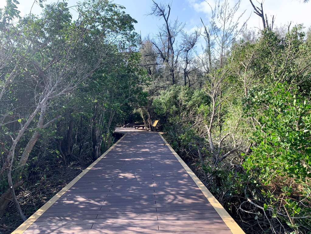 Director Guo Zhenhui of the Tourism and Tourism Bureau stated that there are two north-south plank roads in the mangroves on the west side of the park. Due to the erosion of sea water, salt, strong winds, and sunlight, many places are old and damaged. The Tourism and Tourism Bureau of Tainan City Government has successively invested resources in reorganizing the two-way plank road in recent years. In 107, the northbound plank road was renovated, and the southward extension plank road, which was closed for 10 years, was rebuilt in 109. Currently, about 170 meters of the plank road has been completed and opened. The plank road is expected to be completed in 111 years. The renovated plank road is 3 meters wide, gentle and comfortable. The morning sun passes through the gaps in the leaves and falls on the plank road in the green tunnel. It is relaxing to walk on it. You can also watch fiddler crabs, mudskippers and the twisted mangroves up close. The root system is very suitable for parent-child travel.