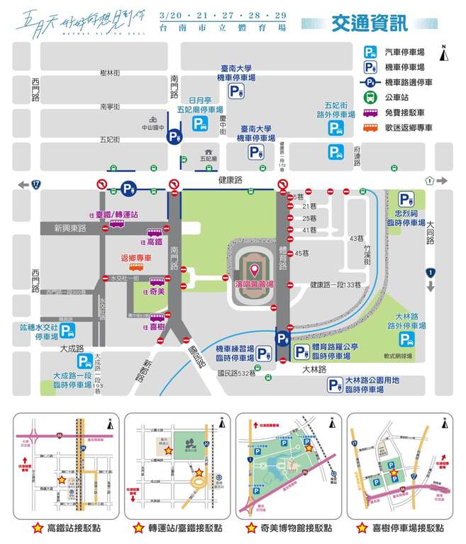 The "Mayday Fly to 2021 Tainan Concert" co-organized by Believe Music International Co., Ltd. and the Tainan City Government will start singing at the Tainan Municipal Stadium this Saturday (3/20). The concert was held again in Tainan for 16 years. Mayor Huang Weizhe attaches great importance to supporting measures such as traffic control and epidemic prevention. Today (18), the director of the Transportation Bureau Wang Mingde, the police bureau chief Fang Yangning, the education bureau chief Zheng Xinhui, the health bureau, and Guan The Tourism Bureau, Sports Department and other units went to the stadium to find out whether the various traffic control planning, rescue and epidemic prevention work have been positioned before the start of the performance, and the Director of the Transportation Bureau Wang Mingde explained the traffic control scope, alternative roads, parking lots, public transportation and other related plans, the police station Director Fang Yangning explained the on-site traffic management and safety order maintenance work at the concert, including the deployment of police and charity cooperation. I believe that the Music International (Stock) Company and the Health Bureau will explain the overall activities such as epidemic prevention, rescue and evacuation lines. Mayor Huang also personally Go through the entry process for epidemic prevention and confirm the implementation details.
