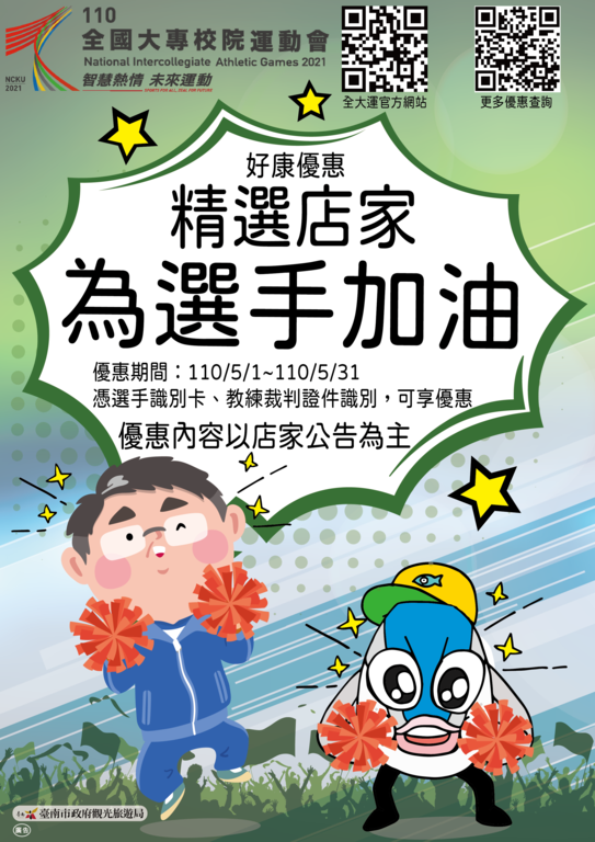 Tainan Mayor Huang Weizhe said that the 110th National College Sports Games will be held in Tainan. Sports elites from various colleges and universities will sweat in the competition venues. Ten years of sharpening their swords are only for this moment, chasing the highest honor, and for their youth. Do not leave white, leaving colorful pastels. The Municipal Tourism and Tourism Bureau specially invited shops from all over Tainan to offer a number of discounts to athletes and event staff participating in the Games. In addition, it also arranged an exclusive city walk guide and commentary service for athletes and event staff, allowing players and event staff to be able to stay in Tainan. Relax and take a light trip for a walk.