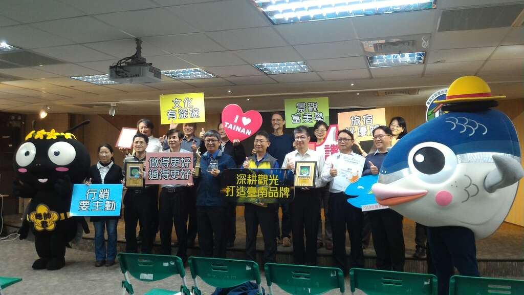 臺南市政府觀光旅遊局於12月12日辦理「108年度成果發表記者會」,陳信安局長表示,黃偉哲市長就任以來非常重視觀光發展,在厚實的城市底蘊魅力基礎與各觀光產業及市府團隊的齊心努力下,使得今年臺南觀光市場持續發展,也多所突破,至108年11月底,旅宿業家數較去年同期514家增加至581家,成長13%,房間數增加1,092間,觀光人數達2,110萬人次,較去年同期增加93萬人次。現場由陳信安局長細數今年度臺南的觀光推動成果與亮點,觀光旅遊局吉祥物「魚頭君」與「蟋蟀君」也現身現場增添歡樂氣氛。