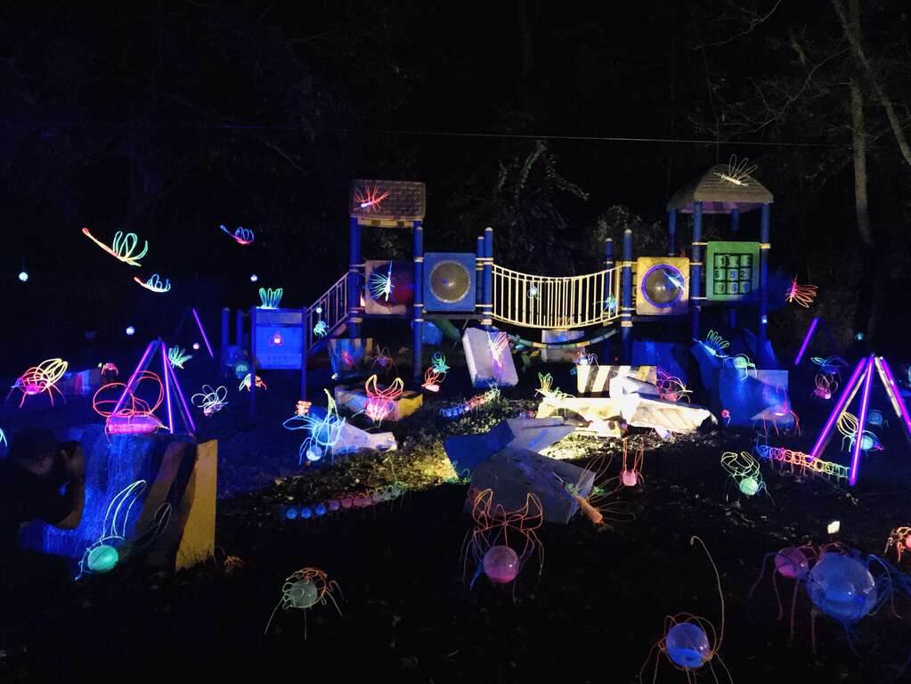 今年首度舉辦的龍崎「空山祭」(12/21-2/2),於龍崎區的虎形山公園以「看見生命」為策展主題,展出7組藝術家與社區居民學生、生活環境互動激盪出的動畫故事及9件現地創作作品,藉由光影變化讓遊客感受藝術與自然山林結合的奇幻氛圍。