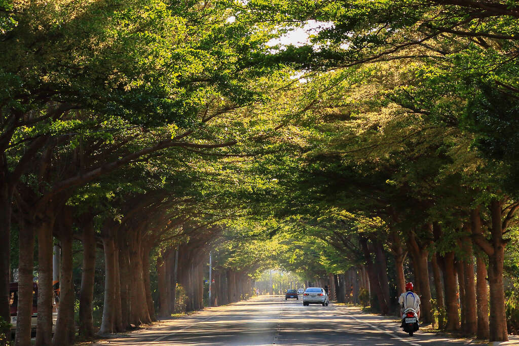 而若說登上國家級綠隧能看見如潑墨山水畫般雄偉壯觀的自然景緻,走訪台南鄉野小徑則能欣賞如巴比松畫派筆下純樸而恬靜的自然風光。位於台南市學甲區174 線公路段的小葉欖仁,每到開春即形成近1 公里長的翠綠隧道,這處位在174線台南下營大屯、學甲瓦寮交界路段,連接中山高、南二高的台84線東西向速公路學甲往南約500多公尺處,栽種20年來較少人破壞,綠葉繁盛之時兩排茂密的樹冠相互交織,形成一條深長的綠色頂棚,如童話般的美景總能吸引旅人駐足觀賞,可說是在地絕美的私房秘境。