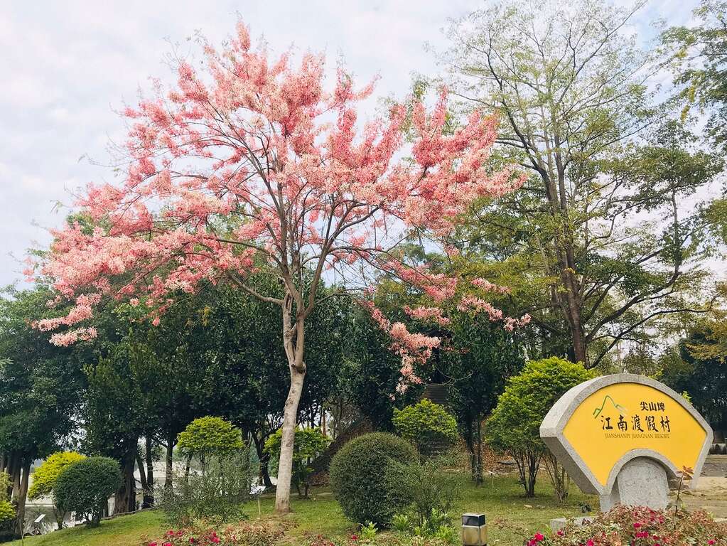 此外,柳營區的台糖尖山埤江南渡假村、南化區的玉山寶光聖堂、西港區的金砂國小、官田區的烏山頭水庫花旗木也正熱情綻放,滿樹桃紅粉白媲美櫻花,絢麗璀璨浪漫破表。而說到台南必訪的花海隧道,不可不提每年2、3月盛開的木棉花道。除了被譽為全球最美花道之一的白河林初埤木棉花道,位於台南將軍區南21線也有綿延約3 公里、全台最長的木棉花道,盛開時一片火紅,花落時道路一片綠意盎然,別有一番風情。