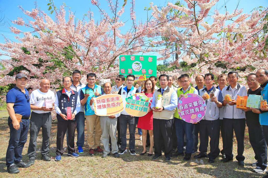防疫期間,除了確實遵守中央疫情指揮中心的規範外,做好自身防疫並放鬆心情至戶外踏青也是舒緩身心壓力的好方法。臺南市長黃偉哲特別推薦戶外賞花、泡湯,順便把在地農特產品帶回家!觀旅局今(28)日特別趁著花旗木盛開,於楠西區龜丹休閒體驗農園舉辦記者會,臺南市市長黃偉哲、觀光旅遊局局長郭貞慧、新聞處處長蘇恩恩、臺南市議會穎艾達利議員、周奕齊議員、蔡旺詮議員、楠西區公所區長李鴻裕、玉井區公所區長陳新澈、大內區公所區長李賢村、南化區公所區長洪正國、左鎮區公所區長李燿州與龜丹在地業者等貴賓均獲邀出席,現場也由各區業者帶來在地伴手禮與農特產共同推廣。在清明連假前夕,黃偉哲市長也特別感謝疫情發生以來,臺南各觀光產業對全民防疫的配合,並肯定溫泉業者對遊客入園泡溫泉的衛生要求,以及做好入園量體溫及洗手消毒等防疫工作的努力。