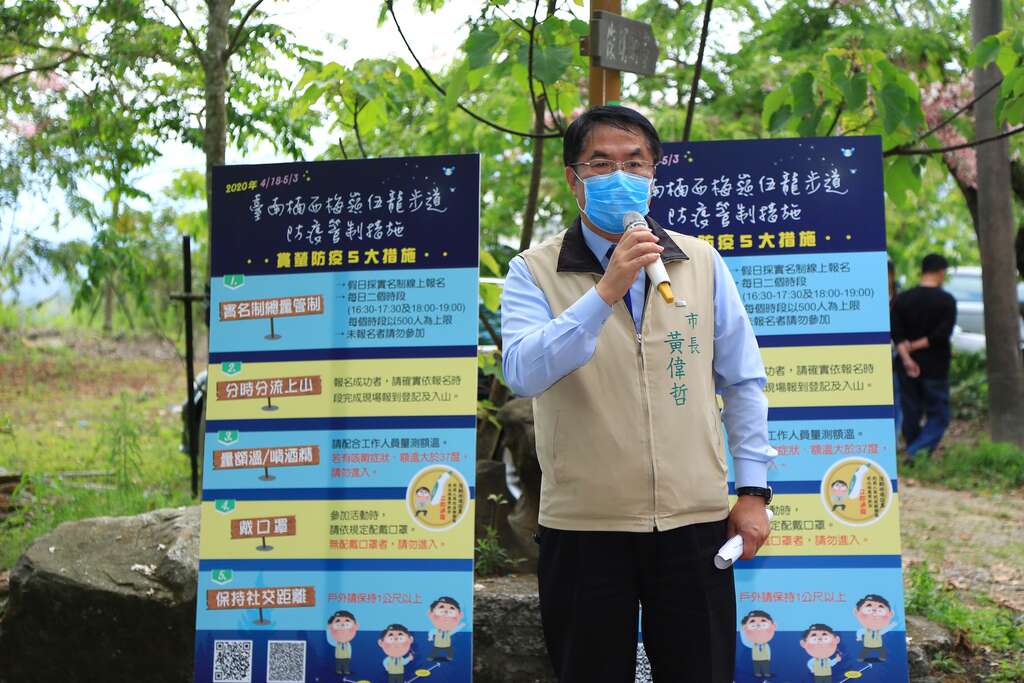 因應賞螢季節的到來,為加強入山賞螢之防疫工作,臺南市政府將首次啟動梅嶺風景區管制措施,於109(今)年4月18日至5月3日為期3周之6天周休假日,針對伍龍步道採實名制登記報名及分時分流上山等措施。市府今(12)日於楠西梅嶺舉辦因應賞螢季節的到來,梅嶺風景區相關防疫管制因應措施的宣導記者會,並由臺南市市長黃偉哲、觀光旅遊局局長郭貞慧、新聞處處長蘇恩恩、臺南市議會祕書長汪啟瑞、蔡旺詮議員、穎艾達利議員、楊中成議員、周奕齊議員及其他立委、議員服務處代表、楠西區公所區長李鴻裕、臺南市梅嶺休閒農業協會理事長黃貴珍、臺南市梅嶺風景區發展協進會理事長賴榮信與在地業者等貴賓共同出席。