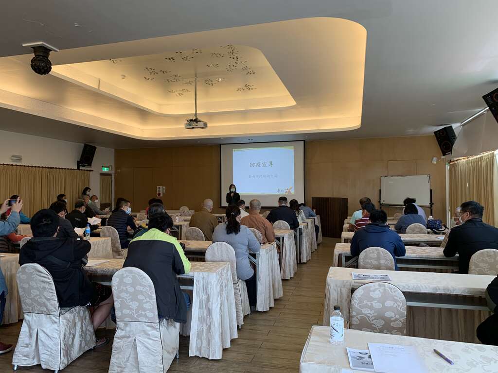 於109年4月13日臺南市溫泉協會課程開訓的首日,本局再次辦理「疾病防疫措施宣導暨因應」聯合座談會,邀請市府衛生局向嘉南農田水利會風景區管理處、烏山頭湖境度假會館、虎頭埤風景區、臺南市溫泉協會、關嶺社區發展協會、關子嶺形象商圈委員會、財團法人火山碧雲寺、財團法人大仙寺,以及關子嶺風景區周邊業者,宣導新冠肺炎及登革熱防治,鼓勵餐飲業者加入本局安心宣言之養生安心餐,由本局協助推廣,會中並透過烏山頭水庫風景區、虎頭埤風景區等單位分享防疫方式及後續連假期間之總量管制因應措施,一同落實防疫。此外,針對後續推動關子嶺溫泉美食節活動,也於4月15日再次前往關子嶺,並邀集關子嶺溫泉及商圈業者舉辦「2020關子嶺特色燈飾合作計畫」說明會,共同研商後續振興方案。