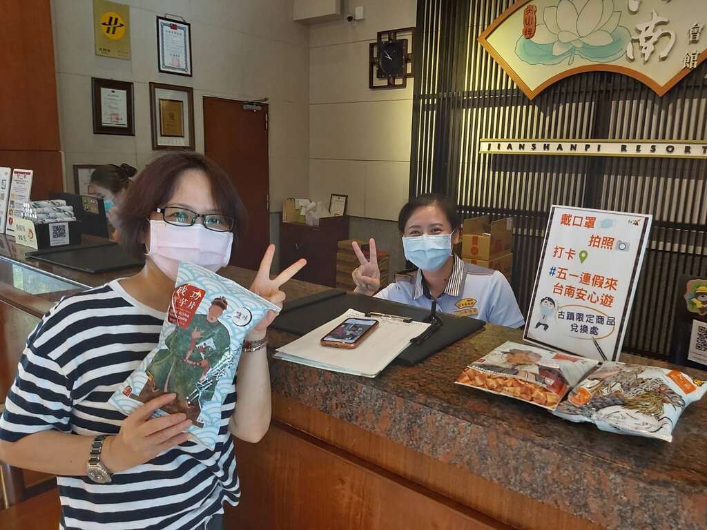 觀旅局郭貞慧局長表示,此時尚屬防疫時刻,但國人緊繃已久的防疫情緒,可以藉由適當出遊讓身心獲得舒緩,也鼓勵多消費提振地方觀光產業,非常歡迎遊客來台南玩,但仍須有防疫意識及相關作為。因此特地推出「五一連假安心遊台南」活動,就是要請大家出門做好自我健康管理並戴好口罩,凡於五一連假期間走訪本次列入交通部「1968」APP的台南29處景點(其中湖境會館和安平劍獅假日夜市二處已刪除人潮警示,但仍可打卡換禮物),上傳戴好口罩與景點拍照打卡的照片,並標註「#51連假我來台南安心遊」,即可憑上開戴口罩拍照打卡的臉書畫面,至下列指定地點兌換古蹟限定商品1包,連假第一天上午已兌換出152份,後續將視兌換踴躍程度適當追加。
