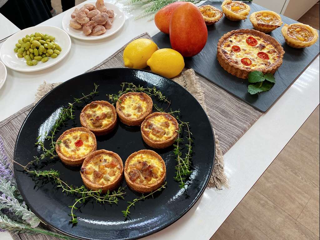 手作課程利用台南在地食材引導學員手作入菜或點心製作,除了吃得安心也多了一份家鄉味。此次課程台南市民宿文化發展協會特別邀請星級飯店主廚吳建平指導「法式鹹派」創意餐點,利用包括柳營鮮奶、楠西梅嶺梅子、新市毛豆仁、官田菱角仁、西港胡麻油、鹽水小番茄及七股海鹽等台南在地食材,烘培出香噴噴家鄉味,從產地到餐桌充分融入地方特產,十分吸引遊客味蕾,以吃食體驗臺南,支持在地農業發展。吃完鹹的就是要配甜的,再嘗一口利用玉井愛文芒果、青芒果乾及赤崁黑糖做成的「玉井愛吻芒果蛋塔」,幸福感瞬間提升十倍。而後續導覽體驗課程更精心找來七股在地推廣食魚教育最棒的單位「股份魚鄉」,讓學員深度了解台南虱目魚的歷史由來及虱目魚的美味之處,讓學員不僅懂得如何食虱目魚,更能深刻了解食的文化內涵。