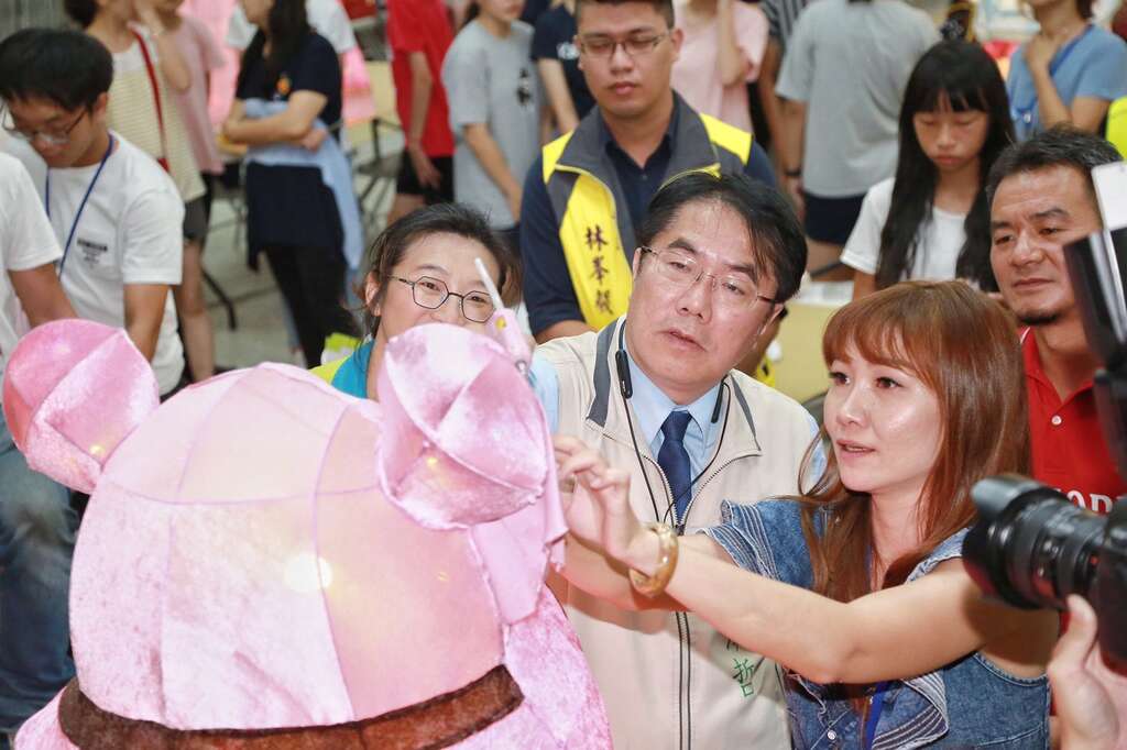關子嶺溫泉美食節今年即將邁入第16年舉辦,為了擴大及形塑關子嶺一年一度火王爺花燈夜祭巡行的活動特色,臺南市政府觀光旅遊局今年特別與在地溫泉業者與協會合作「關子嶺特色花燈製作研習營」,除了為預計9月推出的溫泉美食節暖場外,也期許透過產官學及民眾的合作,讓活動更有在地的連結性與參與。研習營自7月20日起在白河區仙草國小展開,經過參與師生與民眾4天的努力,18款花燈也多已進入收尾的工作,今(23)日臺南市市長黃偉哲、臺南市政府觀光旅遊局副局長林國華、白河區公所主任秘書陳玉惠、仙草國小校長李志軒、沈家鳳議員及各議員服務處代表、統茂溫泉會館、景大渡假莊園、懷香食堂、尚達礦泥漿溫泉等業者也出席特別前往仙草國小為現場燈藝師與各組研習學員們加油打氣,市長也首次獻藝體驗傳統花燈製作,一展全糖市長文武雙全的一面。