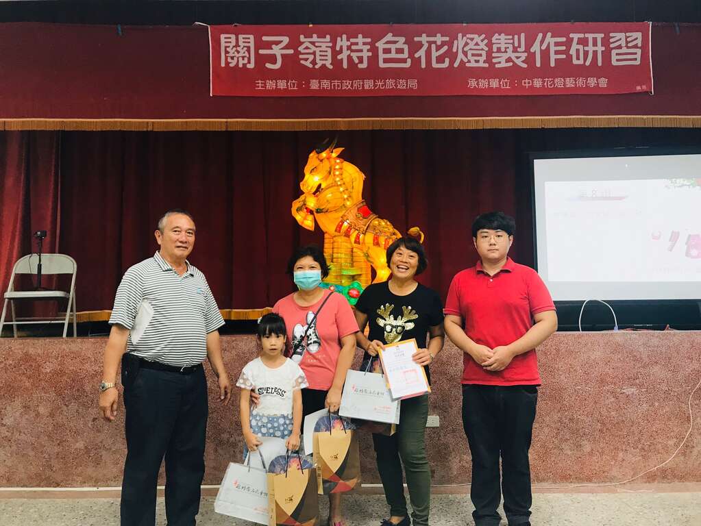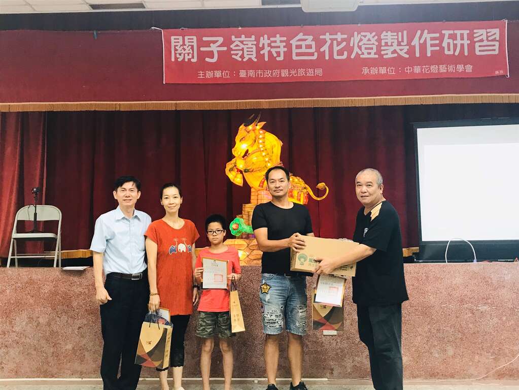由臺南市政府觀光旅遊局、中華花燈藝術學會推出「關子嶺特色花燈製作研習營」,於今(24)日於白河仙草國小辦理結業式,由市府觀光旅遊局副局長林國華、白河區公所主任秘書陳玉惠、台南市溫泉協會傅國亮理事長、關嶺社區發展協會蔡宗曦理事長,以及各合作業者林桂園石泉會館、統茂溫泉會館、懷香食堂、沐春溫泉湯宿、清爽民宿、原味山產美食等在地業者一同出席頒發結業證書及贈送參與學員禮品,當關子嶺小火王、甕雞太郎、關子泥泥3大主角,共計19座花燈齊點燈時,現場參與學員齊呼真的好美!也非常感謝市府舉辦這麼精彩的研習,也開始期待參加關子嶺溫泉美食節活動。