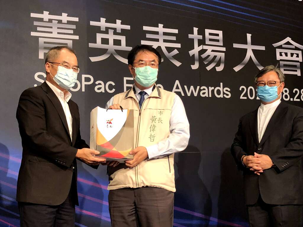 市府於8/28晚間迎接永豐金證券公司獎勵旅遊首發團,永豐證券朱士廷董事長及江偉源總經理因看好台南企業獎勵旅遊方案,特地將今年度的菁英表揚晚會舉辦地點選擇在志玲姐姐大婚日指定下榻之台南晶英酒店,並以兩天一夜(8/28-8/29)的旅遊行程包裝,來一趟全台南排好玩滿的員工旅遊,為了感謝市長精心準備的企業旅遊六大好禮,特地邀請市長黃偉哲蒞臨晚宴致詞。黃偉哲市長在晚宴中表示,台南是一個有深度有廣度的城市;有著豐富的歷史人文、充滿地方特色的美食、還有百看不厭的山海美景。永豐金證券是國內證券業的領導企業,尤其是在朱董事長策略發展之下,在數位經營上有完整的規劃及創新的成果。這次永豐金證券能來到台南舉辦年度的「業務菁英頒獎活動」(共有230位員工及眷屬參加),在場的各位菁英都是永豐金證券最優秀的同仁,優異表現大家有目共睹,感謝永豐金證券選擇台南旅遊這個品牌做為犒賞員工的特別禮物,也希望在場的各位多多在台南使用三倍券消費,三倍券用完用現金刷卡也都沒關係,上網還可以登入發票抽輕豪宅,台南永遠玩不膩、美食吃不完,希望各位以後也能多多利用假期再來台南旅遊。永豐金證券朱董事長也當場回應了黃偉哲市長贈送永豐金證券企業旅遊六大禮的好客與熱情,現場宣布加碼永豐金員工三倍券給本次到訪台南的績優員工促進台南消費,也宣布日後會將台南作為永豐金證券員工企業旅遊的首選,現場氣氛high到最高點。