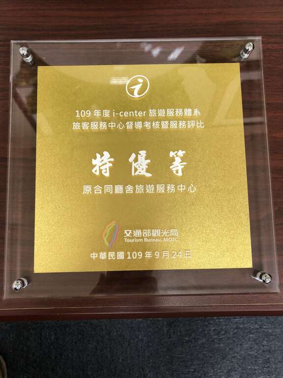 交通部觀光局於109年9月24日辦理「i-center旅遊服務體系服務品質提升作業案成果發表會」,並公布109年考核績優單位,臺南市政府以轄管「原合同廳舍旅遊服務中心」參與直轄市、縣(市)政府地方遊客中心考評,榮獲109年「特優等」獎,為全國惟3獲得該獎項殊榮,也是繼108年無米樂旅服中心獲獎後,蟬連2年獲得「特優等」獎。根據交通部觀光局實地考核評比,包括旅遊服務便利性、硬體設施、導引指標具備多國語系、專業解說、諮詢滿意度、服務品質各方面,「原合同廳舍旅遊服務中心」均獲得考核委員高度肯定。