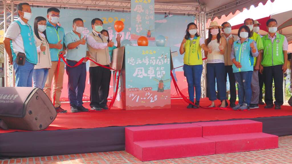 今(1)日臺南市市長黃偉哲、臺南市政府觀光旅遊局郭貞慧局長、臺南市政府新聞及國際關係處蘇恩恩處長、臺南市議會蔡育輝議員、沈家鳳議員、穎艾達利議員、臺南市賴惠員立委服務處李錦華秘書、臺南市陳亭妃立委服務處陳冠潔秘書、李宗翰議員服務處莊昭明特助、劉米山議員服務處王富美區主任、行政院農業委員會水土保持局臺南分局洪政義秘書、柳營區公所區長汪慶龍、臺南市政府警察局新營分局斯儀仙分局長、臺南市黨部郭守義秘書、台灣糖業股份有限公司尖山埤江南渡假村古清南副總經理、走馬瀨農場顏向照副場長、地平線文化事業股份有限公司陳吉祥董事長、臺南市鹽水區仁光國民小學周明毅校長、環保藝術家趙志成老師、柳營區蔡金生里長、林國明里長、蔡明燈里長、張順士里長、柳營區農會蔡坤成理事長、柳營區社區發展協會吳桂美理事長、王雅鈴理事長等貴賓共同參加「2020德元埤荷蘭村風車節」開幕,宣告今年風車節正式開始。