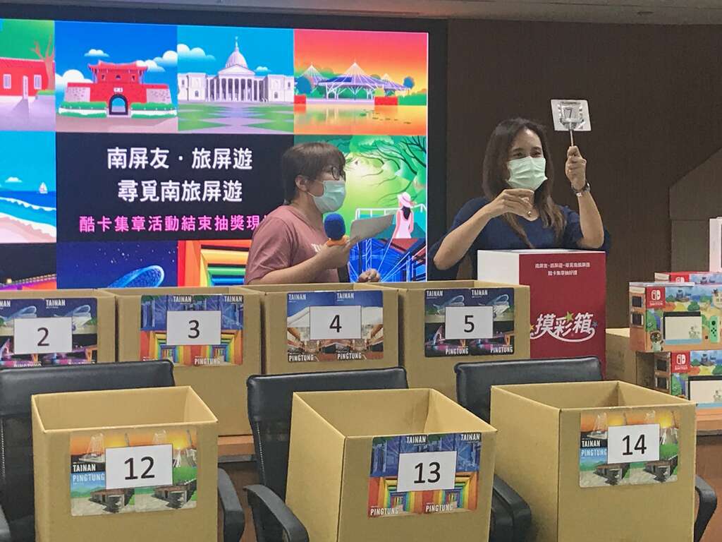 「南屏友~旅屏遊~尋覓南旅屏遊酷卡集章抽好禮」活動,為期二個月於9月20日順利結束,成功吸引全國遊客熱情參與本次南屏双城旅遊抽獎活動,兩個月的活動期間,吸引大批遊客造訪台南與屏東熱門景點,索取酷卡作為旅遊紀念,首刷20,000張的酷卡在短短二周內立即被索取一空,緊急加印第二批15,000張酷卡也幾乎全數發出。今日(10/5)由台南市觀旅局郭貞慧局長與屏東縣交通旅遊處倪國鈞副處長一同抽出76名幸運遊客,本次抽獎項目有筆記型電腦、iPad及一上市即搶購一空,預購至少要等一個月以上任天堂動物森友會組合等。幸運得主林小姐表示,原本只安排墾丁旅遊,但得知此活動立馬增加台南行程,原本就非常喜愛台南緩慢的生活歩調及百吃不膩的小吃美食,此次藉由這個活動讓自己可以找籍口來台南享受美食之外又很幸運中大獎,真的非常開心。另一位得主吳先生表示,幾乎每年暑假都會帶家人來台南,這次去河樂廣場,小朋友玩水都玩瘋了,也去了山上花園水道博物館,除了讓小孩了解台南水道的歷史外,博物館前寬廣無垠的廣場也很適合大人發呆,小孩跑跳,每次來台南都會曬得黑黑吃得胖胖回去。