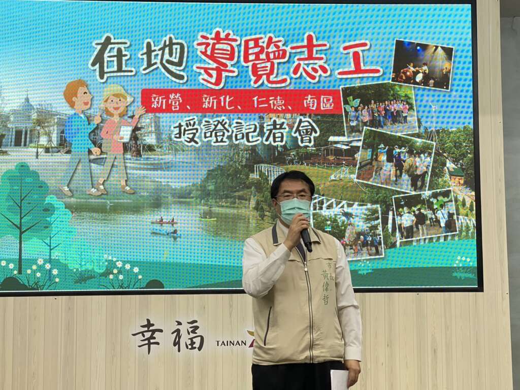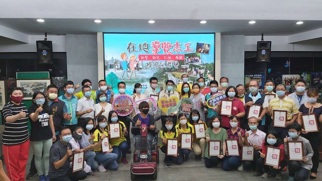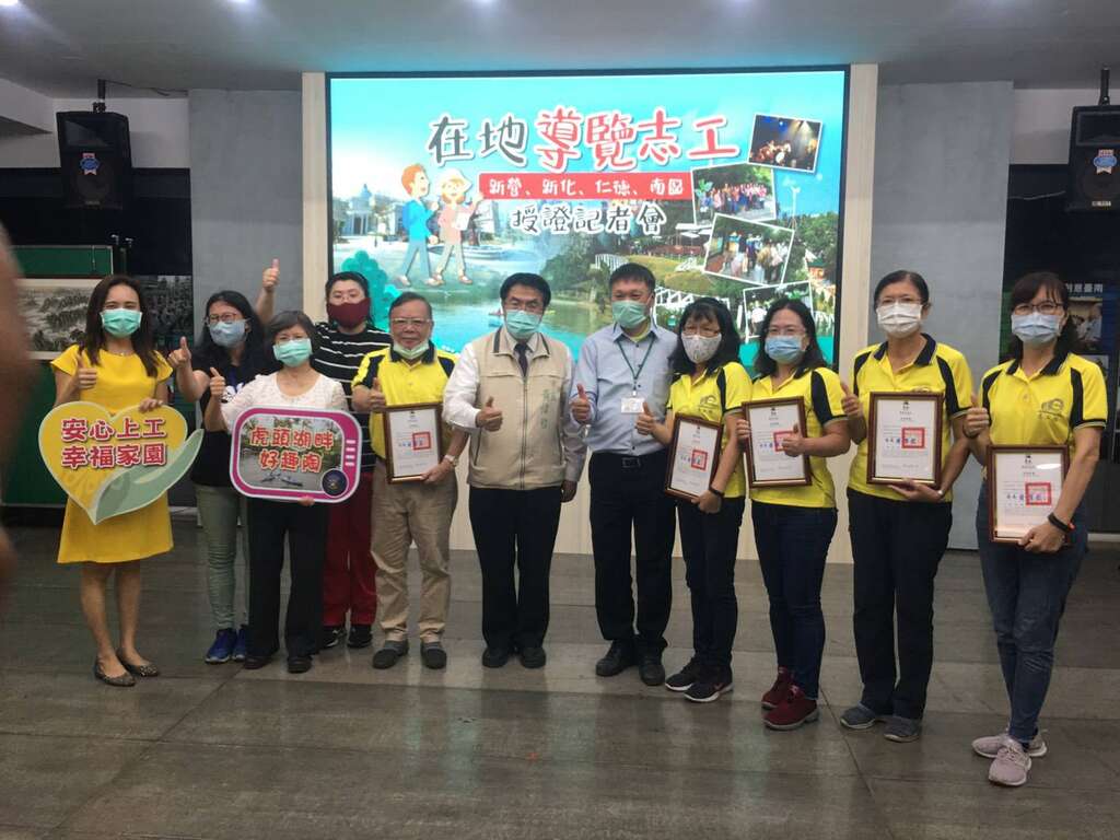 為推廣在地觀光旅遊,觀光旅遊局招募新營、新化、仁德、佳里、麻豆及南區等在地導覽志工,並完成新營、新化、南區、仁德區導覽志工培訓,今(19)日52位導覽志工獲市長黃偉哲授證,未來做為在地觀光旅遊行銷先鋒隊,提供遊客多元觀光體驗,吸引遊客到訪旅遊,帶動地方產業經濟。