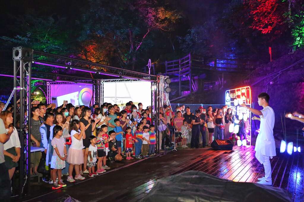 觀光旅遊局郭貞慧局長表示,關子嶺溫泉美食節系列活動今天由光影樂園領先開跑,現場運用國際級光影技術的免費互動體驗,有搭配數位光影藝術科技的光影塗鴉、將浮空手勢技術放入互動感應遊戲的遊光動影,以及用流影方式來打造絢麗花海的繁花光影,新穎科技打造的創意裝置藝術,照亮關子嶺,創造了一場追光掠影的回憶!接著下來我們還有10/24關嶺之戀復古派對、10/31萬聖妖怪溫泉樂園連續2週夜間主題活動,等你相揪來體驗哦!