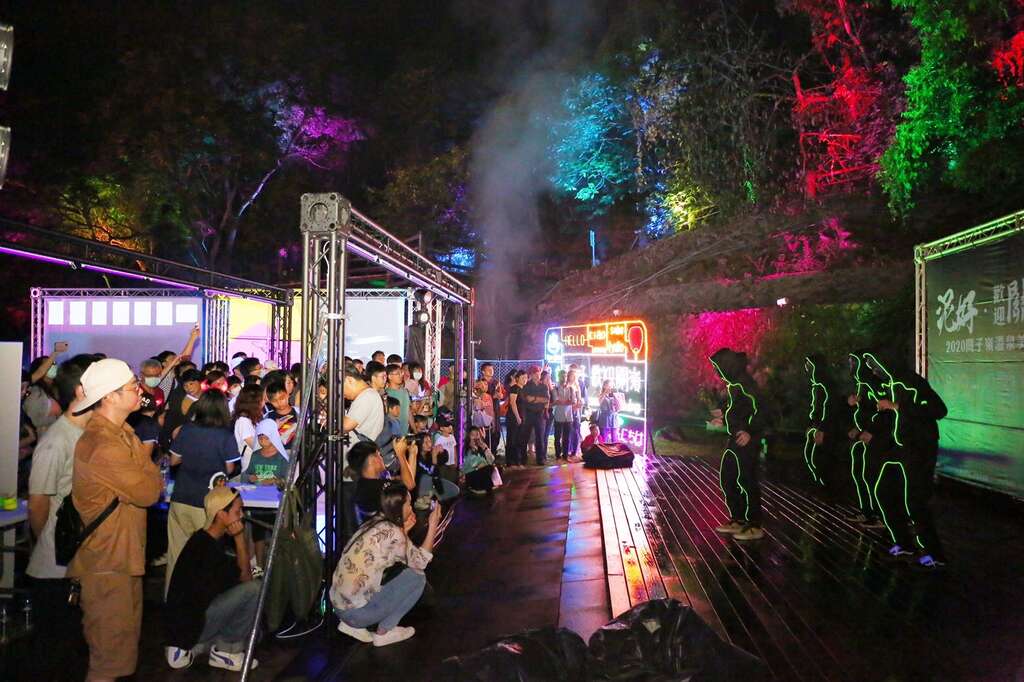 臺南市政府觀光旅遊局主辦「2020臺南關子嶺溫泉美食節」第一場系列活動於10月17日晚間7點整正式登場,寶泉橋溫泉公園活動現場有最新互動光影科技的大地遊趣、繁花光影等體驗,遊客玩得不亦樂乎,猶如大、小朋友的光影樂園遊戲天堂,光影樂園活動邀請到由未來科技裝扮搭配機械式舞蹈動作的冷光科技舞、兼容中西技藝的光影馬戲團帶來一連串炫目精彩的光影表演,現場更提供免費人體螢光彩繪體驗,及由活力四射的DJ帶來High翻全場的螢光炫音派對讓現場氣氛嗨到最高點,將關子嶺打造成光影之夜!