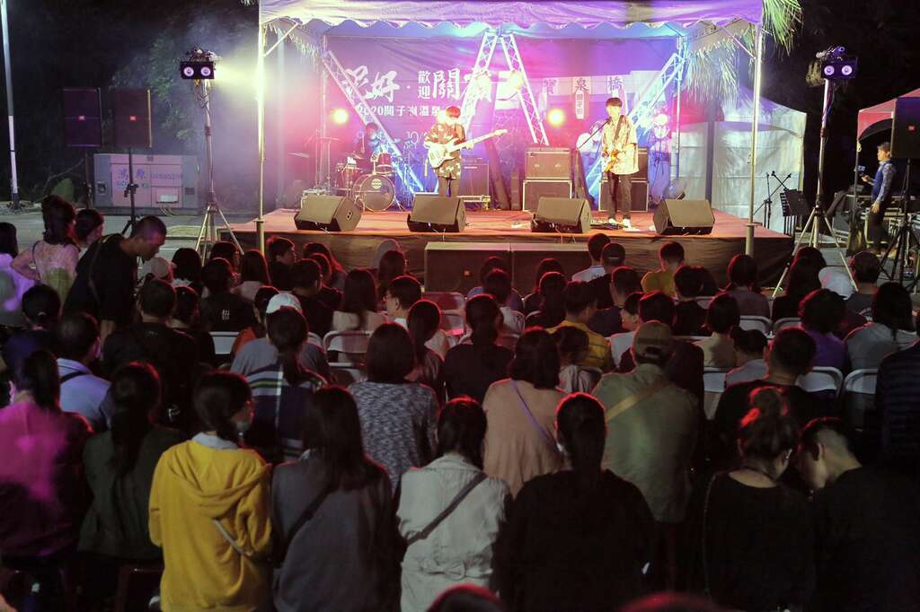 臺南市政府觀光旅遊局舉辦的「2020關子嶺溫泉美食節」,主題系列活動周周精彩連番登場!10月24日舉辦「關嶺之戀復古派對」,復刻五零年代關子嶺戀愛聖地,重現名曲「關子嶺之戀」浪漫時空,搭配復古文青餐車、復刻拍攝場景、咖茶市集體驗,晚間七點即由荷爾蒙少年、旺福樂團、謎路人樂團接連帶來精彩演唱,復古多元的好聲音唱出跨越時空輕搖滾,讓現場民眾聽得如癡如醉,樂在其中享受這屬於「關子嶺之戀」悠閒浪漫之夜晚。黃偉哲市長表示,關子嶺溫泉區歷史悠久,散發著濃厚的台、日懷舊風情,更是早期情侶必遊聖地,一首知名的「關子嶺之戀」道盡約會場景以及戀愛中的甜蜜滋味,在懷舊復古風逆襲的時代,更是必遊的口袋名單之一,時序入秋,搭配遊關子嶺泡泥湯、吃美食、品咖啡,絕對時髦有型。