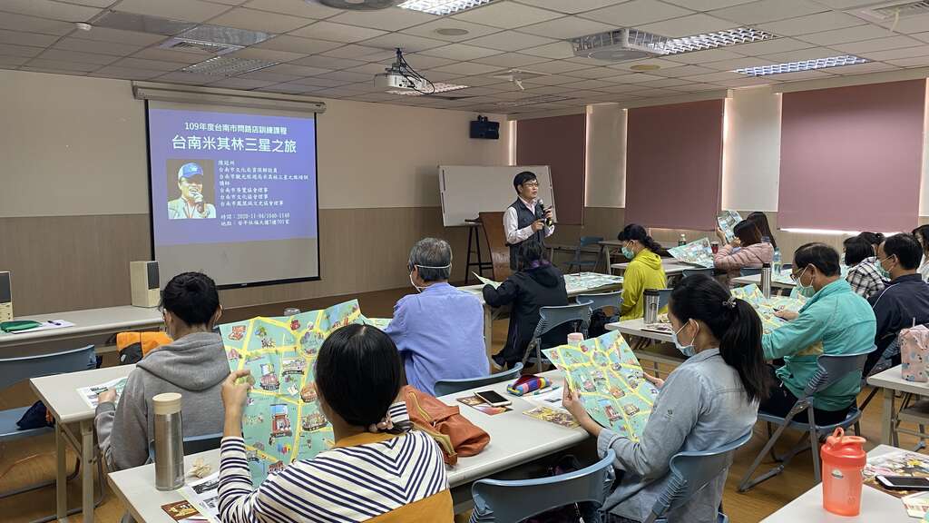 觀光旅遊局表示,今年的問路店教育訓練分為三梯次,並於11月12日圓滿結訓,除了中文版的品質提昇訓練及實地導覽外,也循往例開設了英、日文導覽服務課程,讓有接待國外旅客的問路店家們可以趁此機會好好充電、增強實力。中文課程今年請到了米街人文會社召集人陳宏斌老師分享經營問路店的點滴以及米街的歷史故事;導覽解說技巧課程邀請台南市導覽協會資深導覽老師陳冠州老師擔綱,除傳授規劃遊程景點的私房訣竅外,並實地走訪今年剛落腳安平德陽艦園區的S-2T反潛機以及台灣船園區、億載金城等周邊景點,讓參加台南店家收穫滿滿,直呼原來台南的景點這麼有故事。