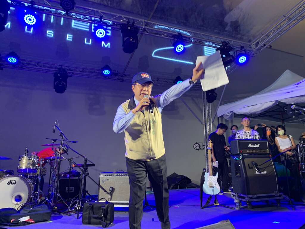 黃偉哲市長於晚間5點多也搭著摩托車到現場跟民眾一起聽音樂、走逛最美市集,黃市長表示去年海豚刑警在貴人散步音樂節的演出就很受歡迎,當初他就現場力邀海豚刑警今年再來,果然樂團也很守信用再度到訪台南演出,今天則很高興可以歡迎及介紹甫獲得金音獎大獎的傷心欲絕到臺南表演,看到現場歌迷這麼多,可見魅力滿點。市長也說,臺南市美術館2館更是臺南最美地標之一,今年臺南城市音樂節&貴人散步,以及好評如潮的森山市集,集結在此舉辦,就是希望給大家「流行音樂+文創+城市建築」所呈現臺南驚艷,也讓大家可以實質體驗臺南是最適合散步、聽音樂、逛市集、看表演、吃美食的城市,相信大家都能夠滿載而歸,明年市府會繼續辦理。