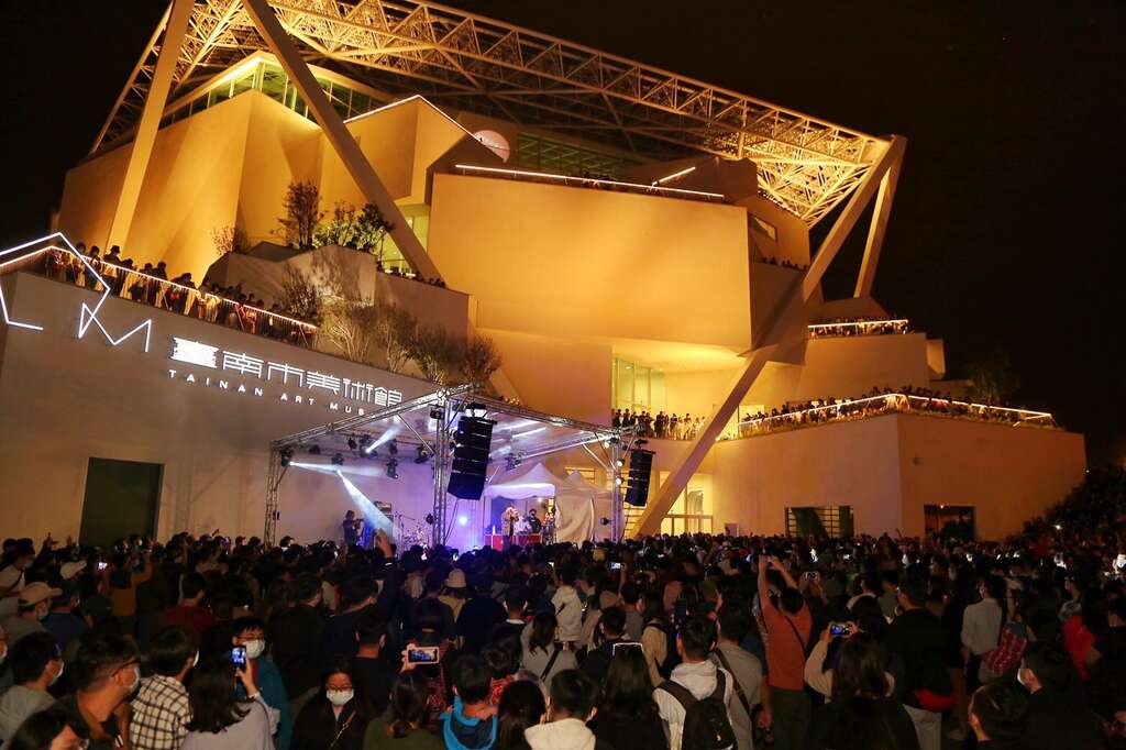 「2020臺南城市音樂節」首場戶外免費演唱會,也接力於下午3點30分在臺南市美術館2館位於忠義路這一側熱鬧開唱!開場結合戲劇、舞曲、女裝等創意元素的人氣紅不讓台版百老匯樂團「毀容姊妹會」打頭陣,接力今年強勢入圍金曲獎的超夯樂團海豚刑警、今年金音獎得主傷心欲絕、饒舌界校長大支以及音樂詩人雷光夏帶來精彩演出,各種不同音樂曲風,現場也吸引眾多樂迷前來聆聽。