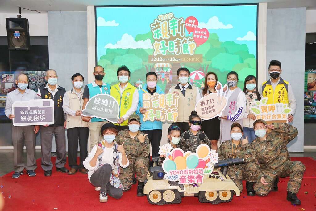 臺南市政府觀光旅遊局首次舉辦「2020親新好時節」,將於12月12日及12月13日於新營長勝營區舉行,今(3)日在民治市政中心舉行活動記者會,黃偉哲市長、觀光旅遊局郭貞慧局長、蔡育輝議員、沈家鳳議員、新營區長魏文貴、警察局新營分局長斯儀仙,及各立委議員服務處代表等貴賓也到場一同歡迎市民朋友攜手走出戶外,漫步長勝營區。