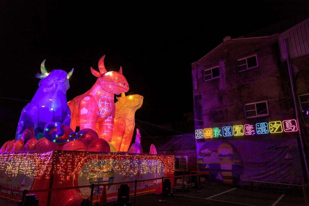 雲嘉南濱海國家風景區管理處與馬沙溝李聖宮共同主辦之「2021綠汕帆影馬沙溝新春地景」,自110年2月5日至110年3月1日止,以李聖宮為中心,邀請雲林北港燈藝師傅吳登興製作,以「福祿壽三牛奔頂」姿態佇立作為主題區。應景的「福祿壽三牛奔頂」主燈佇立在李聖宮旁,還有絢麗的燈光秀,展演時間平日為晚上6時至9時、假日為晚上6時至10時,每半小時展演1次,歡迎民眾一同感受福祿壽3牛帶來的福氣,一整年都福氣滿滿。