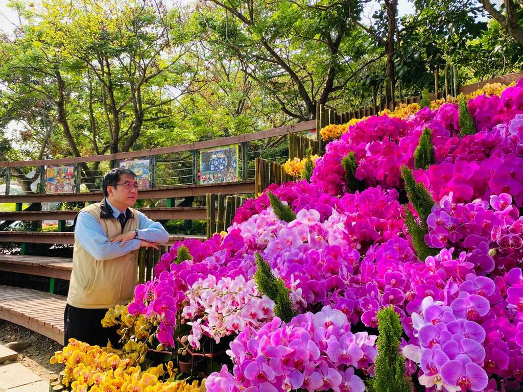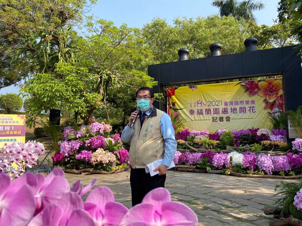 因新冠肺炎配合防疫, 2021臺灣國際蘭展不開展,原預計佈置的3萬株蘭花將移置臺南市24處景點,以「遍地開花」形式讓民眾近距離賞花。市長黃偉哲、議員李偉智、議員陳碧玉、議員許至椿、議員蔡旺詮、議員林志聰夫人余柷青、觀旅局局長郭貞慧、新聞處處長蘇恩恩、新化區長吳金喜等貴賓,今(19)日一起在虎頭埤風景區公佈「2021國際蘭展遍地開花臺南賞蘭遊程」。